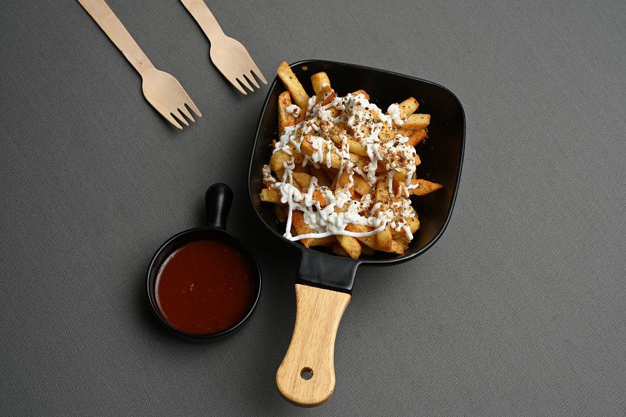 Savor the indulgence of Cheesy Fries, golden and crispy spuds generously smothered in melted cheese for a delightful,