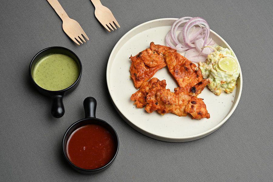 Chicken Tikka transformed: Tandoori\'s smoky allure, Italian flair, Black Pepper\'s kick, and Fire Red\'s fiery intensity create a tantalizing